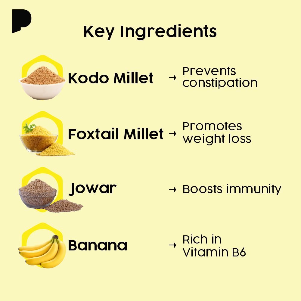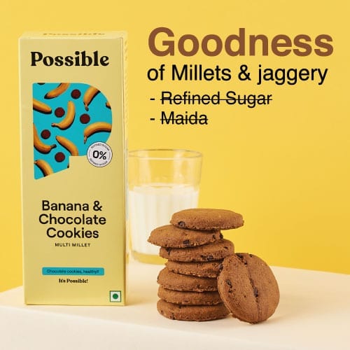A guiltfree indulgence, containing the goodness of millets, jowar and oats. Submersed in rich flavours of chocolate and banana, it’s a new daily companion with tea/ coffee/ mid-meal hunger cravings.