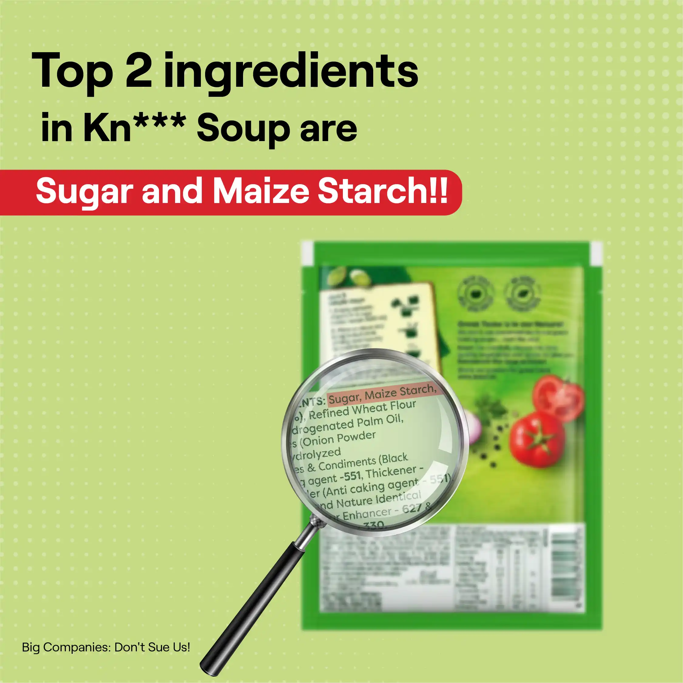 Regular packaged tomato soups have starch and sugar as their main ingredient rather than tomatoes!