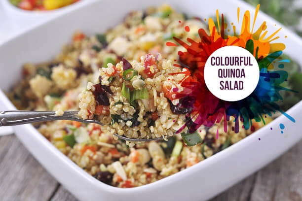 Celebrating this Holi with Quinoa salad is a super healthy and fun idea. Quinoa is rich in protein and iron [4], which makes this colourful salad a powerpack of nutrients. Also, quinoa is gluten-free.