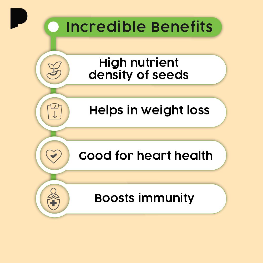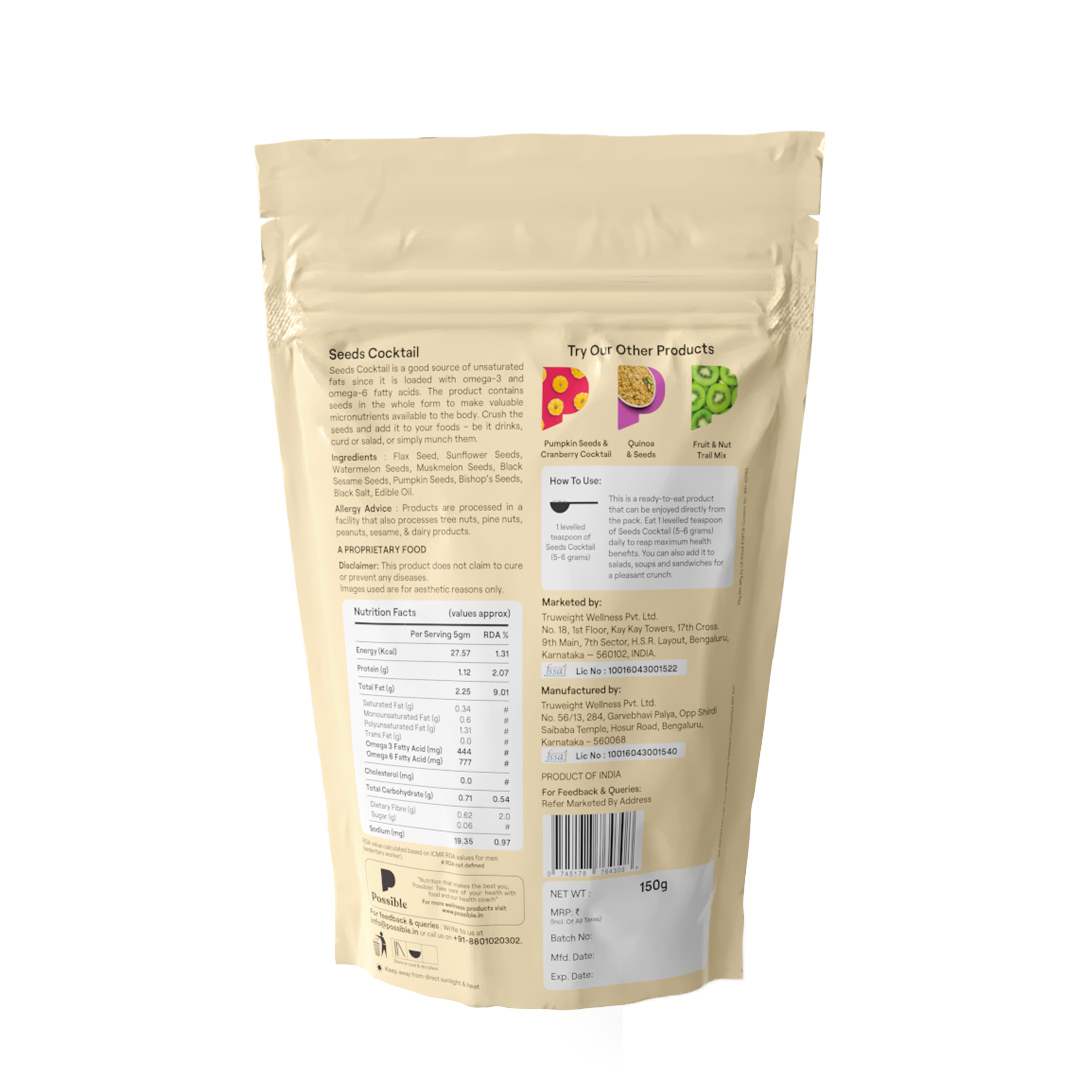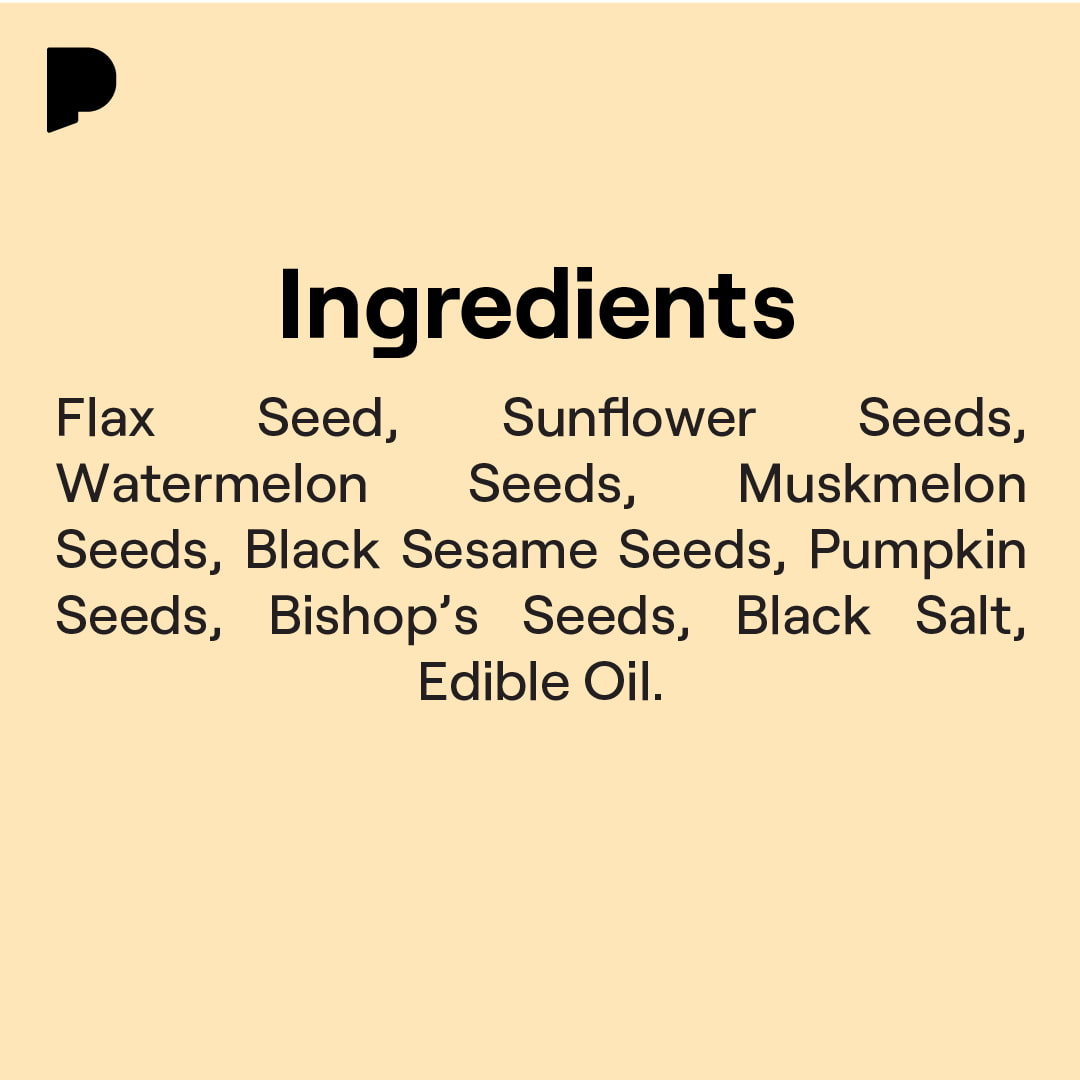 Mix Of World's Best Superseeds With Omega 3 & Omega 6 Superseeds. A healthy cocktail of flaxseeds, muskmelon seeds, watermelon seeds, sunflower seeds, pumpkin seeds, sesame seeds and bishop's seeds. Seeds are the powerhouse of nutrition and is a must have for the entire family. Diabetic-friendly: Rich in Antioxidants and Fiber for Controlled Sugar Release