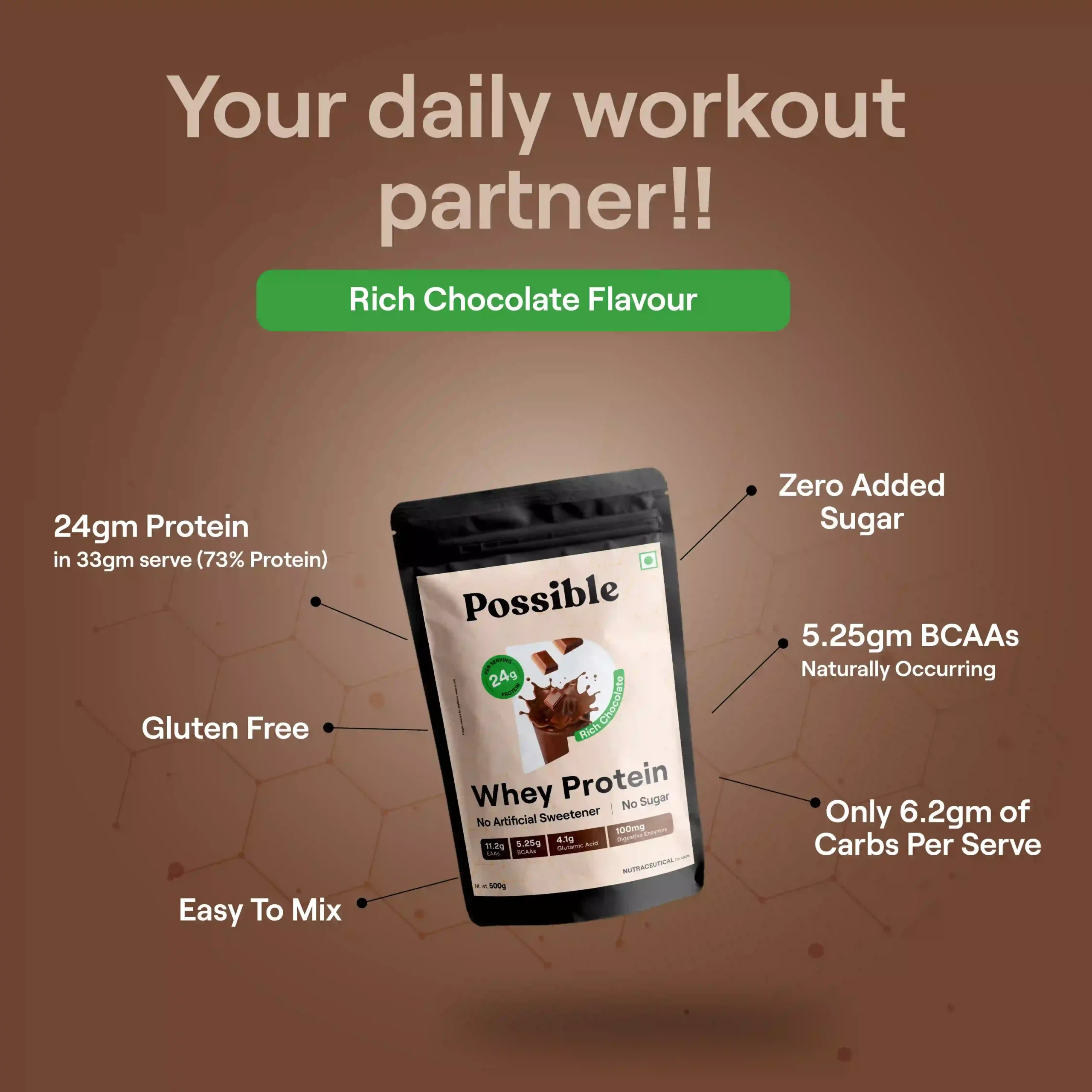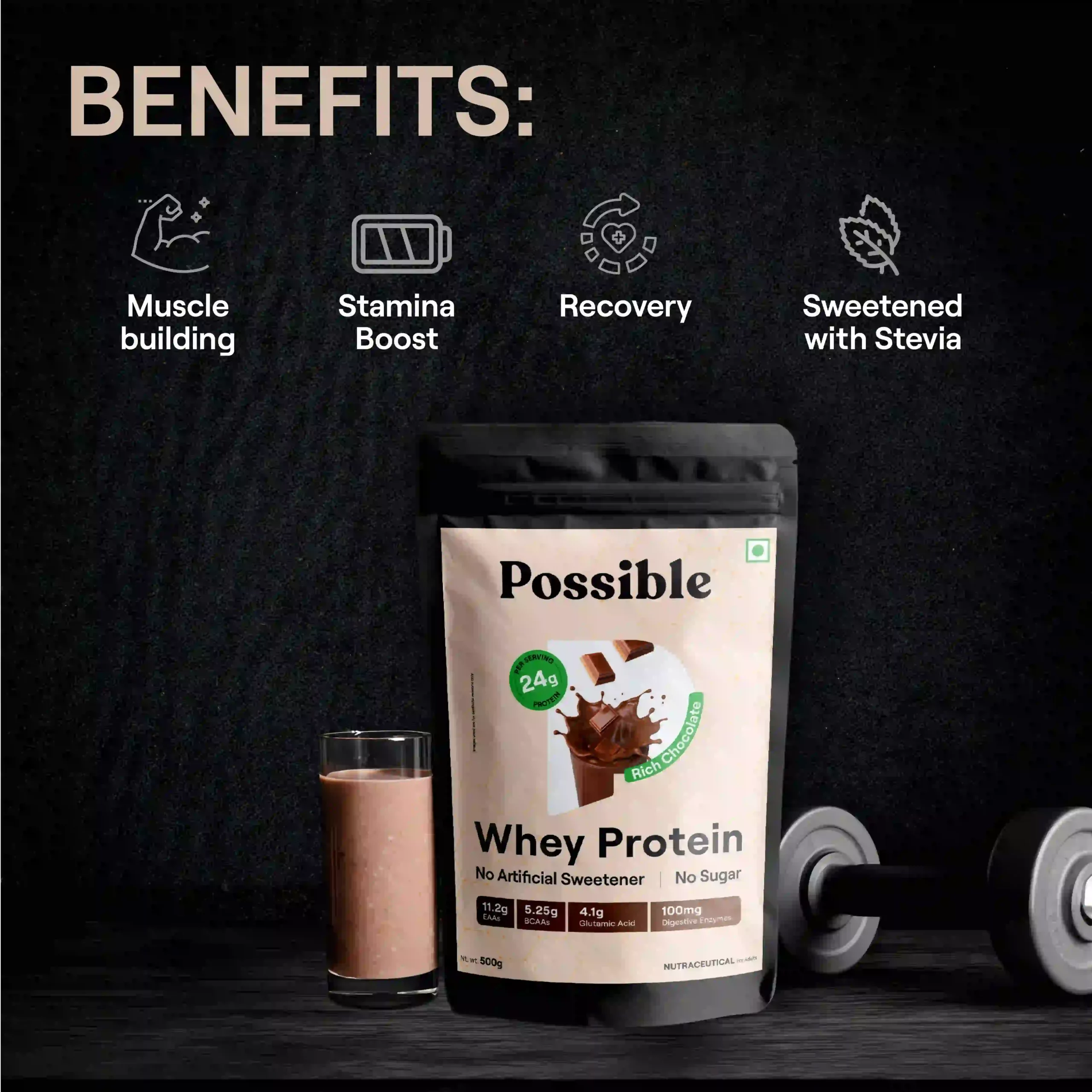 Our whey protein is amongst the rare whey protein in the market without sugar or artificial sweeteners. It is sweetened with natural sugar substitute i.e. stevia.