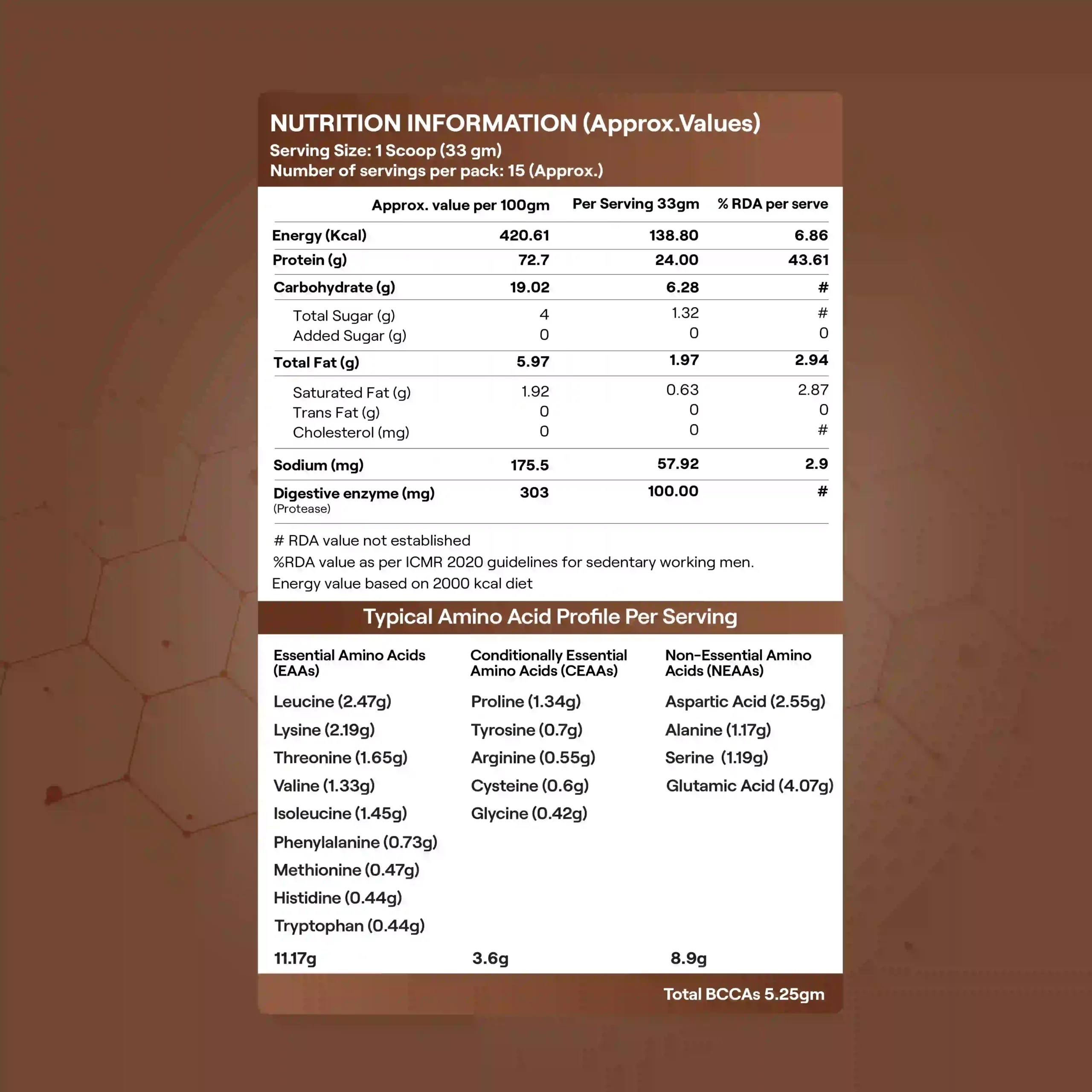 Digestive Enzymes Blend: Our specially curated blend of digestive enzymes ensures that your body efficiently absorbs the protein, reducing bloating and discomfort.